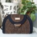 Stylowa, ręcznie wykonana torebka w ponadczasowym połączeniu czerni i jasnego beżu.