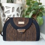 Ręcznie wykonana torebka ze sznurka w wyjątkowym połączeniu ciepłego brązu i głębokiej czerni.